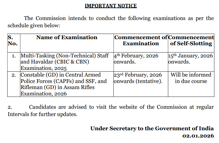 यह नोटिस SSC ने 2 जनवरी 2026 के दिन अपने ऑफिशियल वेबसाइट ssc.gov.in पर जारी किया था।